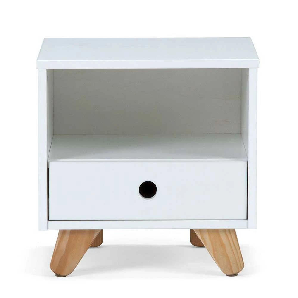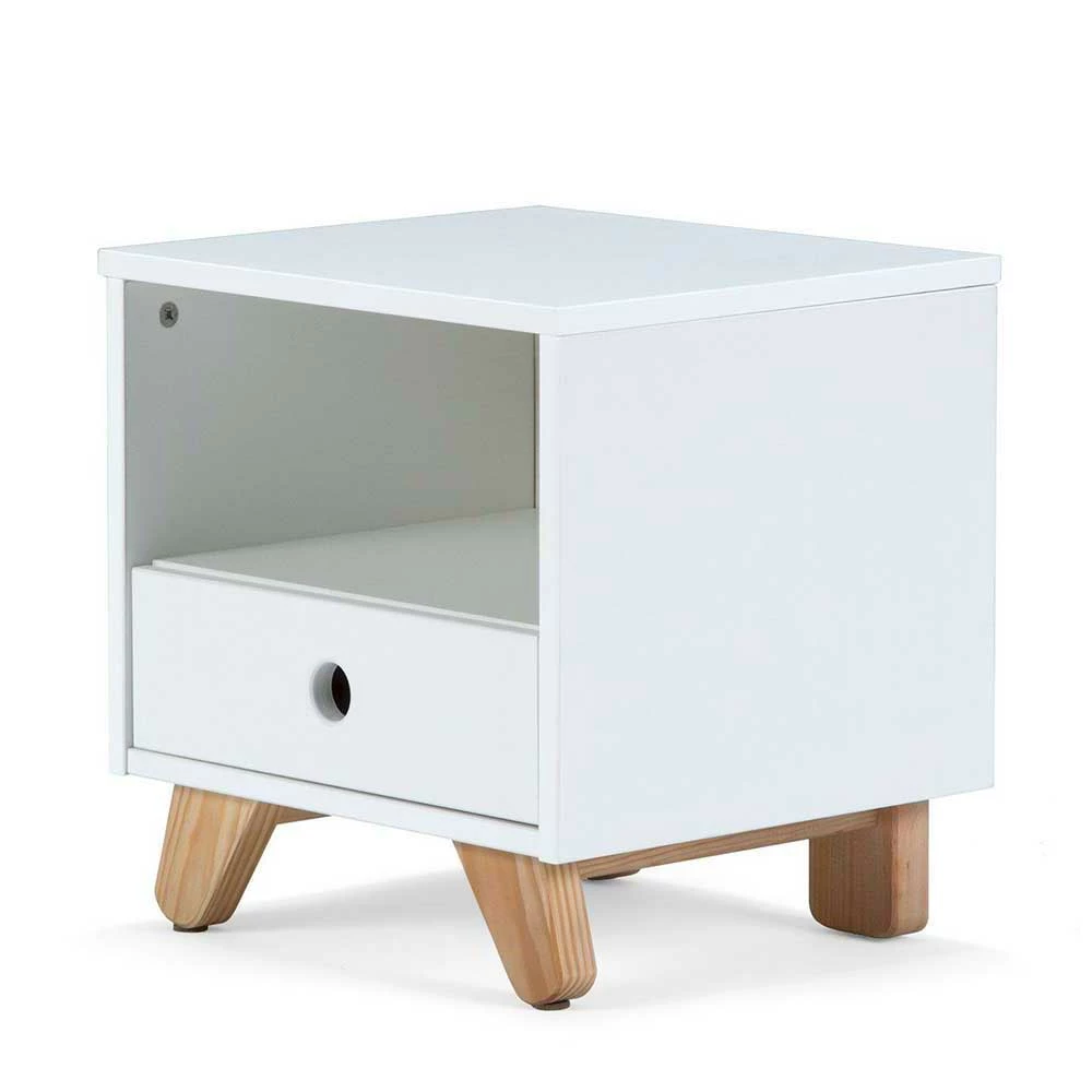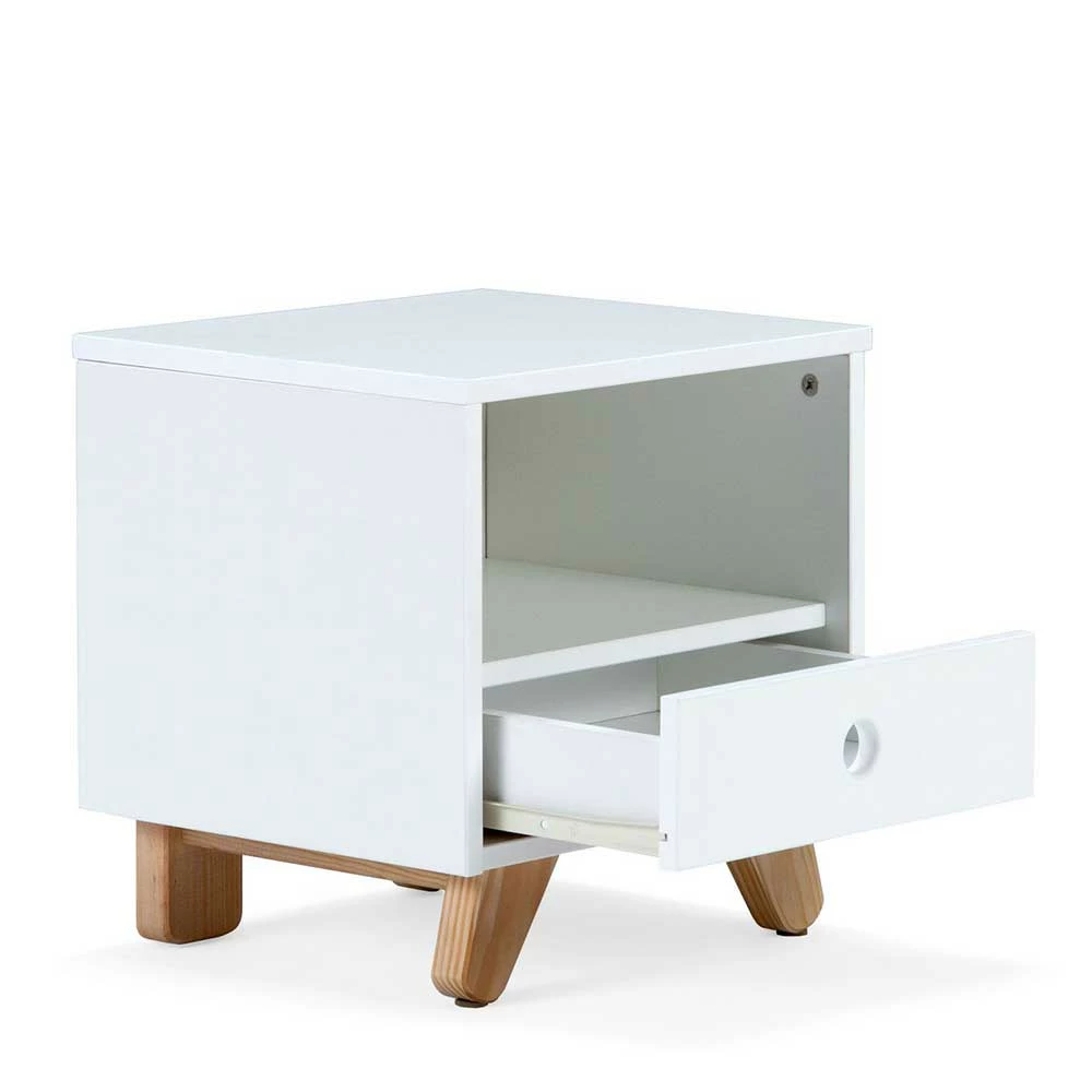 - Moderne Nachtkonsole in Weiß und Kiefer Naturfarben