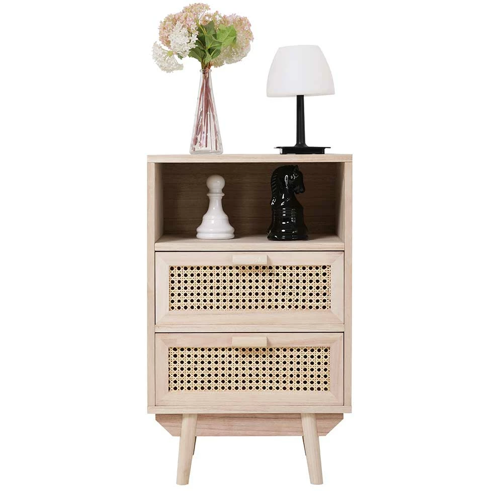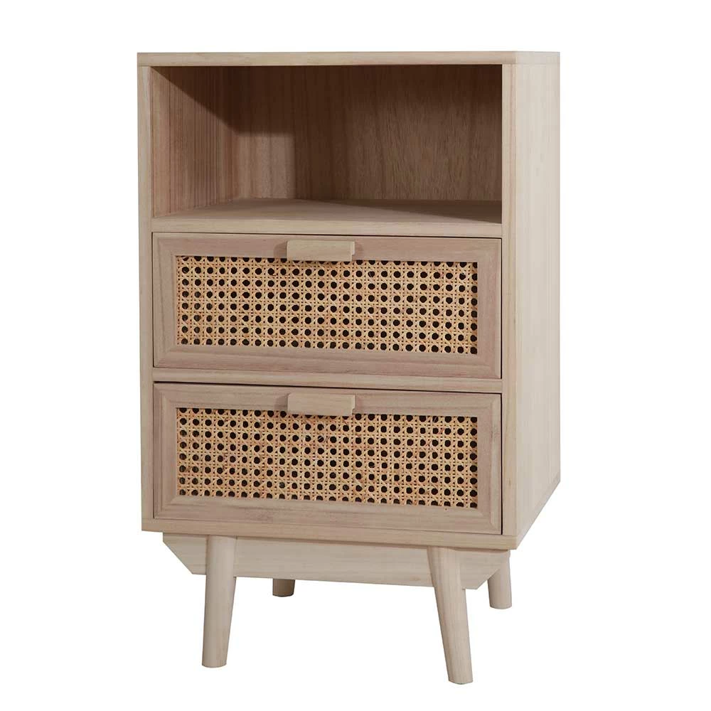 - Aus massivem Paulowniaholz, MDF und Rattan hergestellt