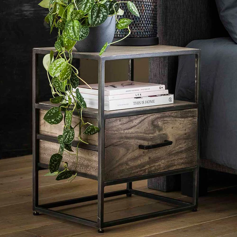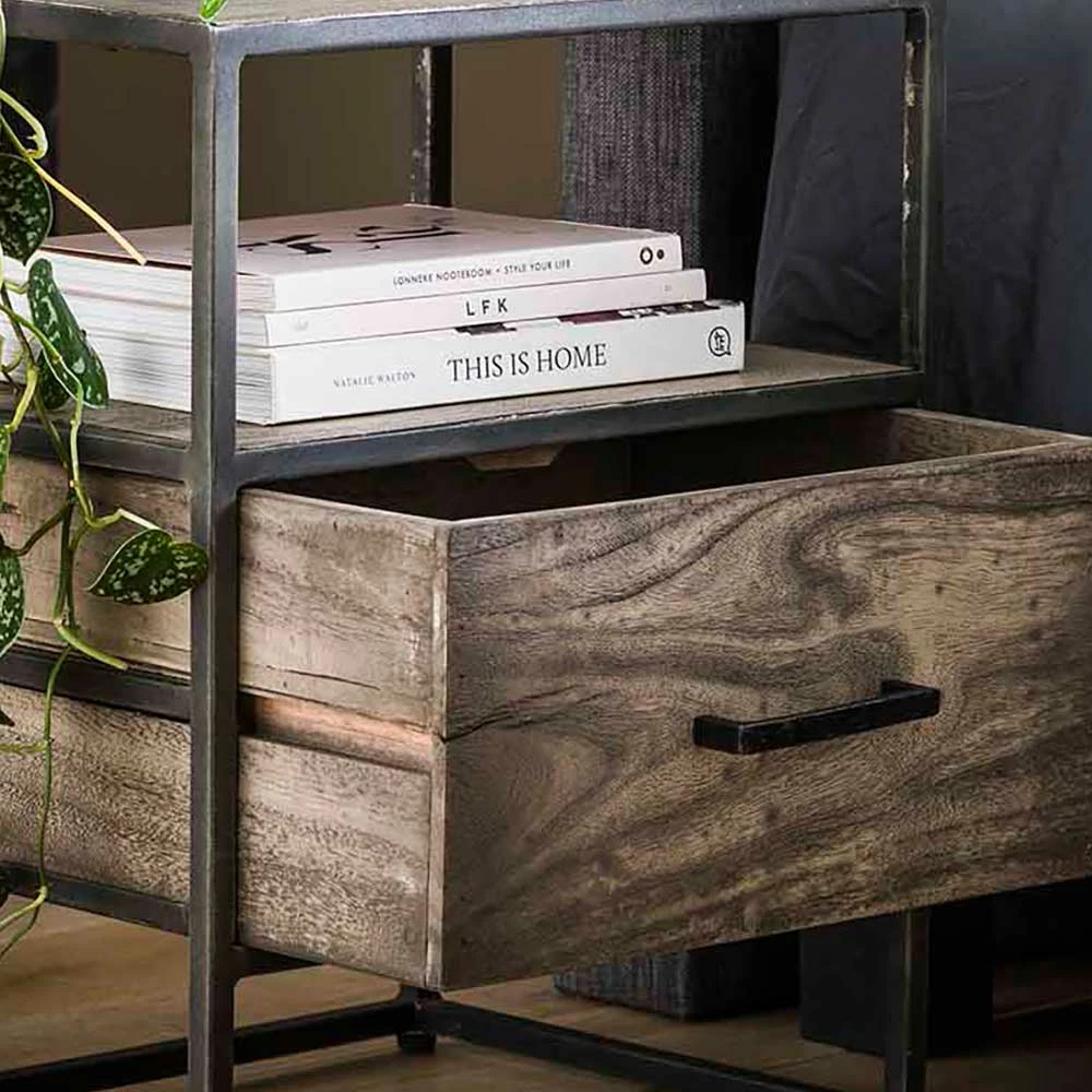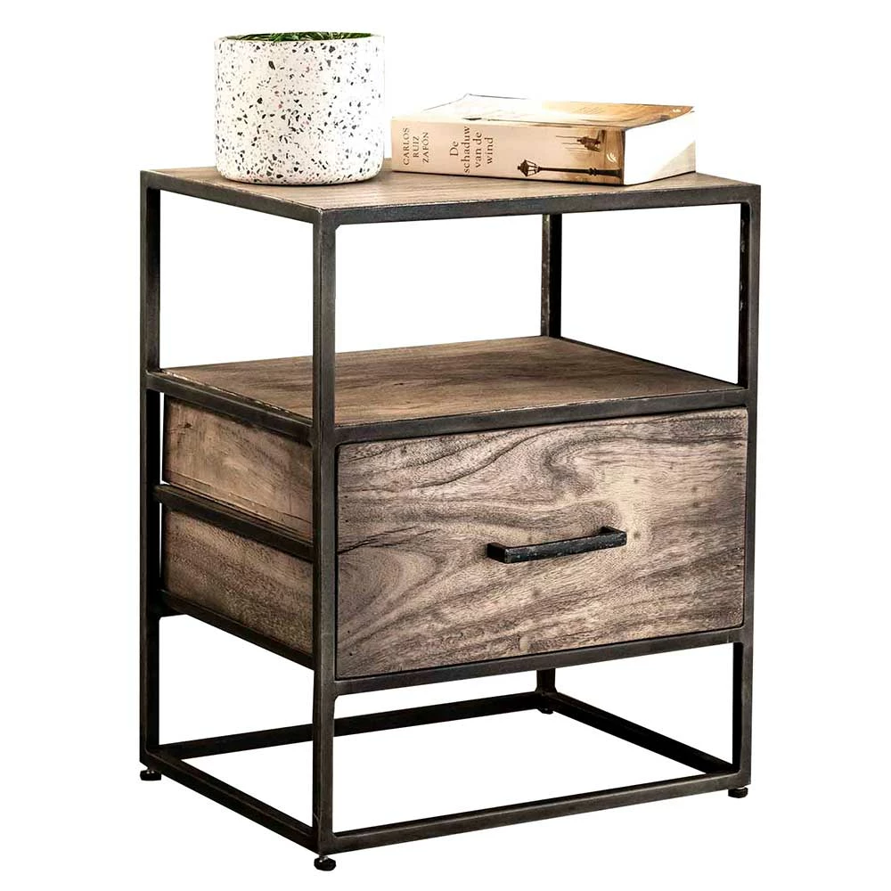 45x55x35 Industrial Nachtkommode Aus Akazie Grey Wash – Nesaris