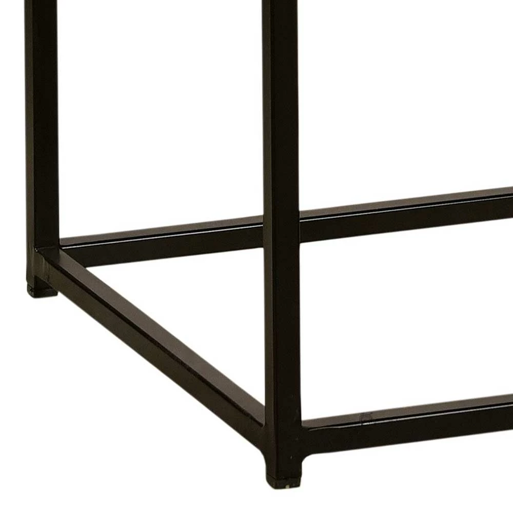- Kantiges Metallbügelgestell mit kleinen Füßen