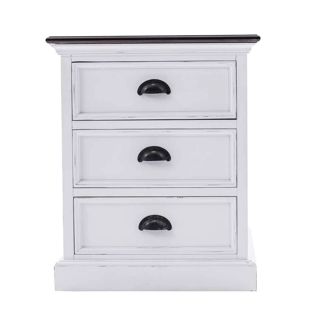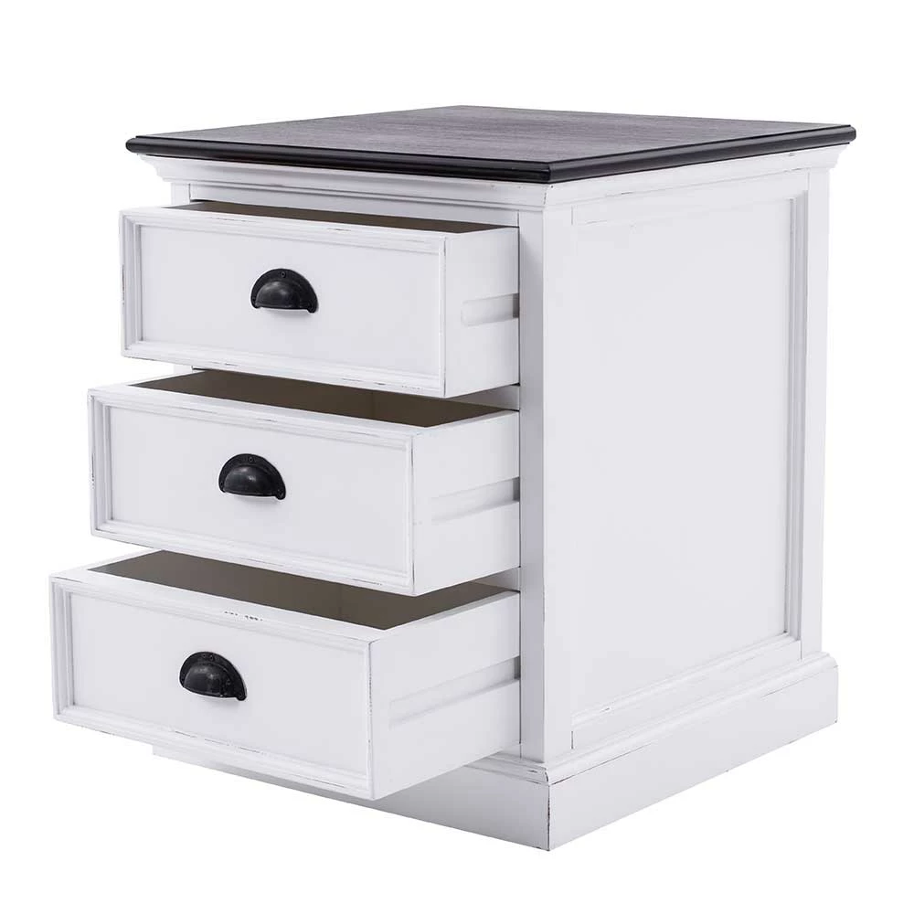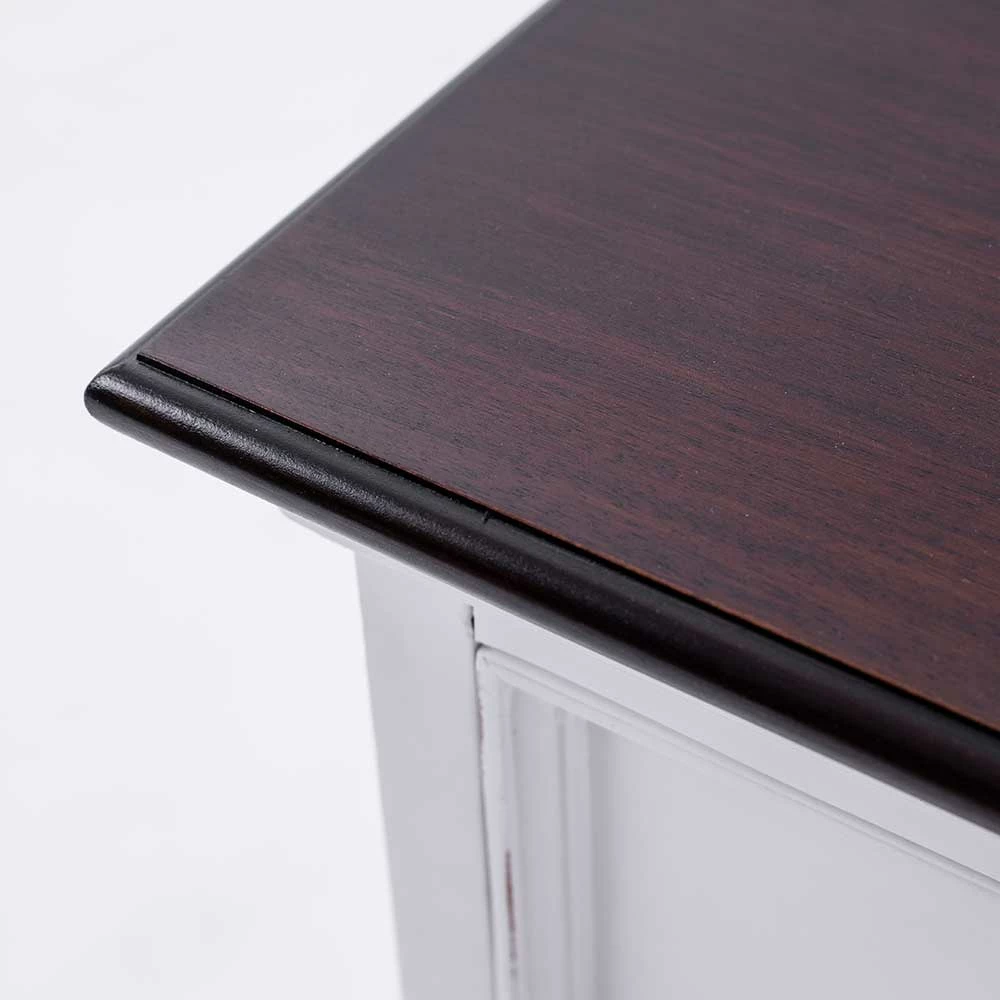 - Robuste Nachtkommode in Weiß und Mahagonifarben