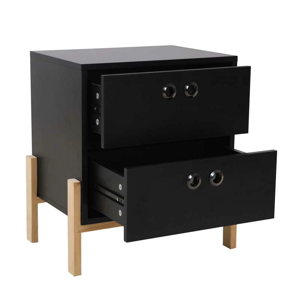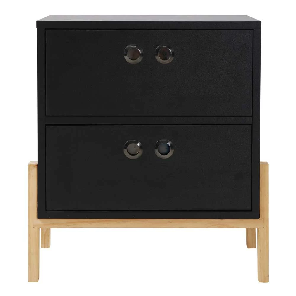 50x55x35 Nachtkommode In Schwarz & Pinie Natur – Caurina