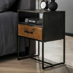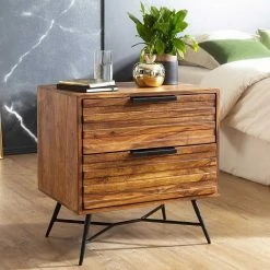 45x55x35 Industrial Nachtkommode Aus Akazie Grey Wash – Nesaris