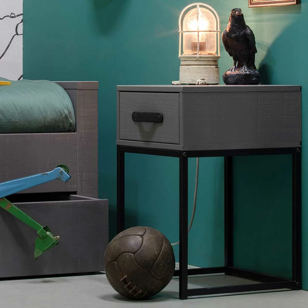Moderner Nachttisch In Grau & Schwarz – Firgetta