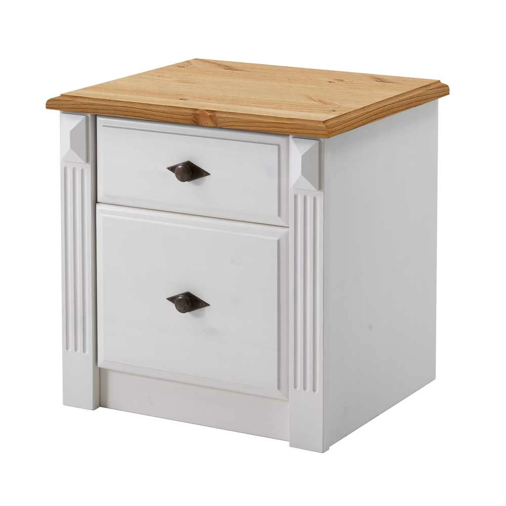 - Weiße Nachtkommode mit Kiefer laugenfarbiger Deckplatte