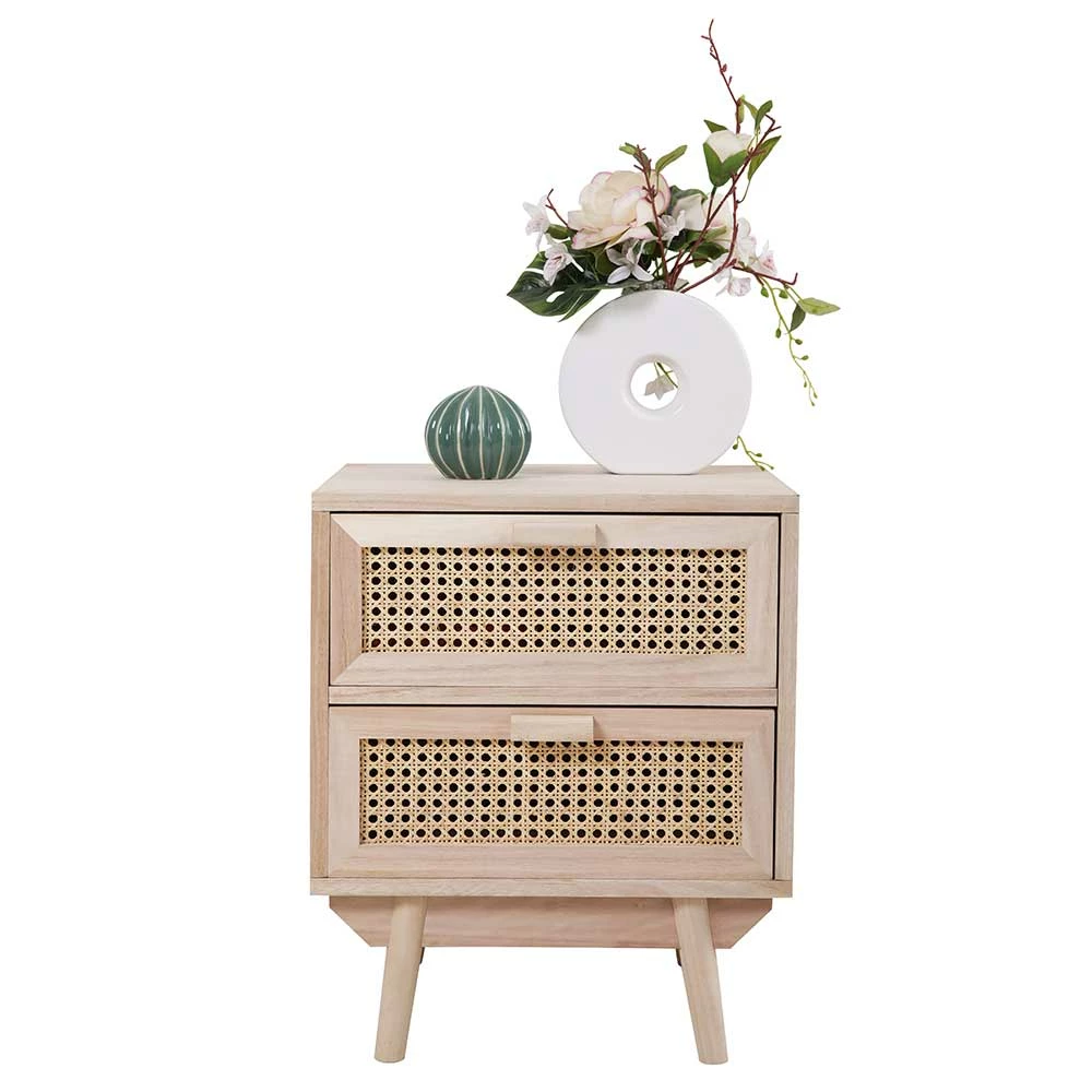 - Aus massivem Paulowniaholz, MDF und Rattan hergestellt