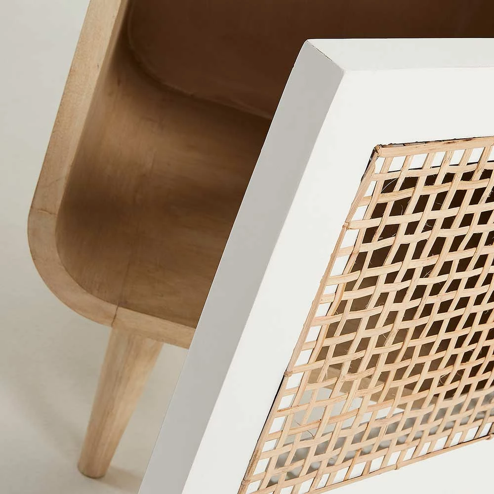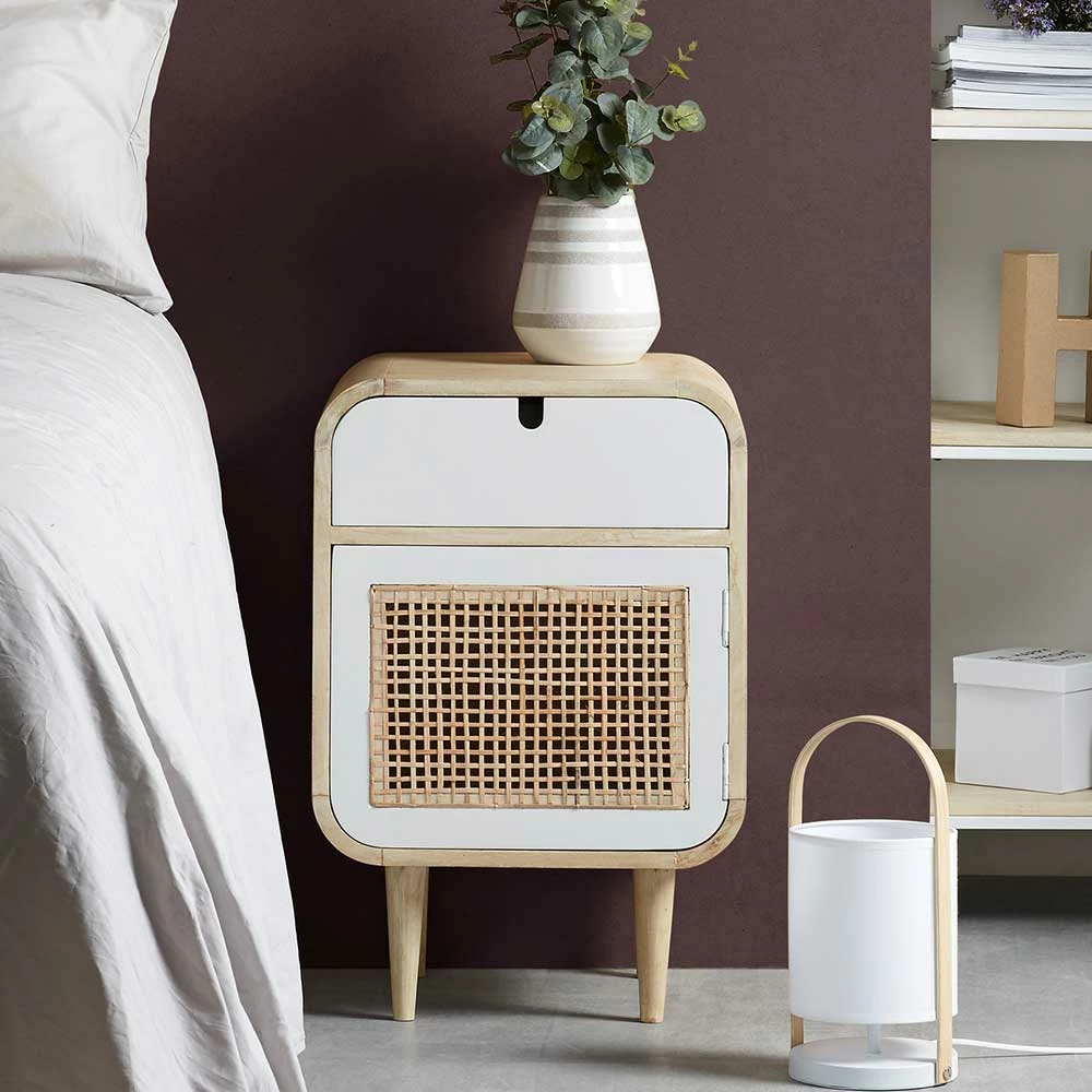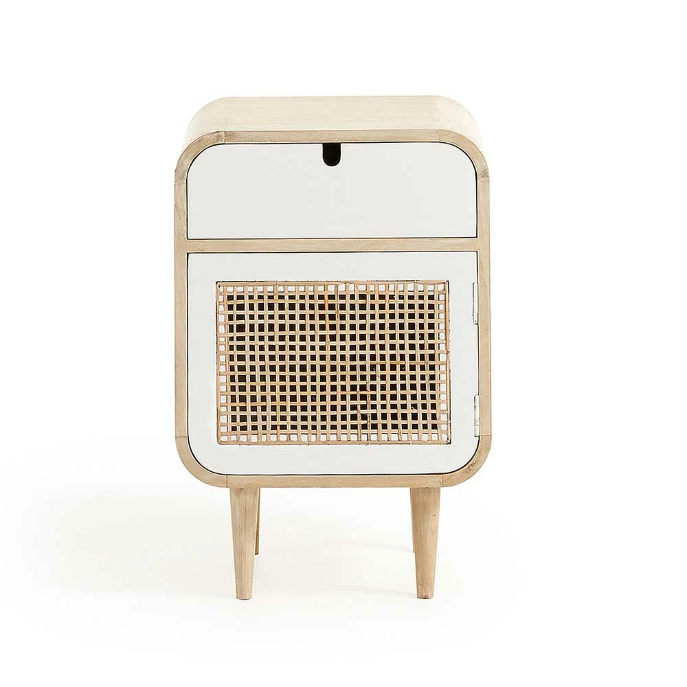 - Helle Nachtkonsole in Holz Naturfarben und Weiß