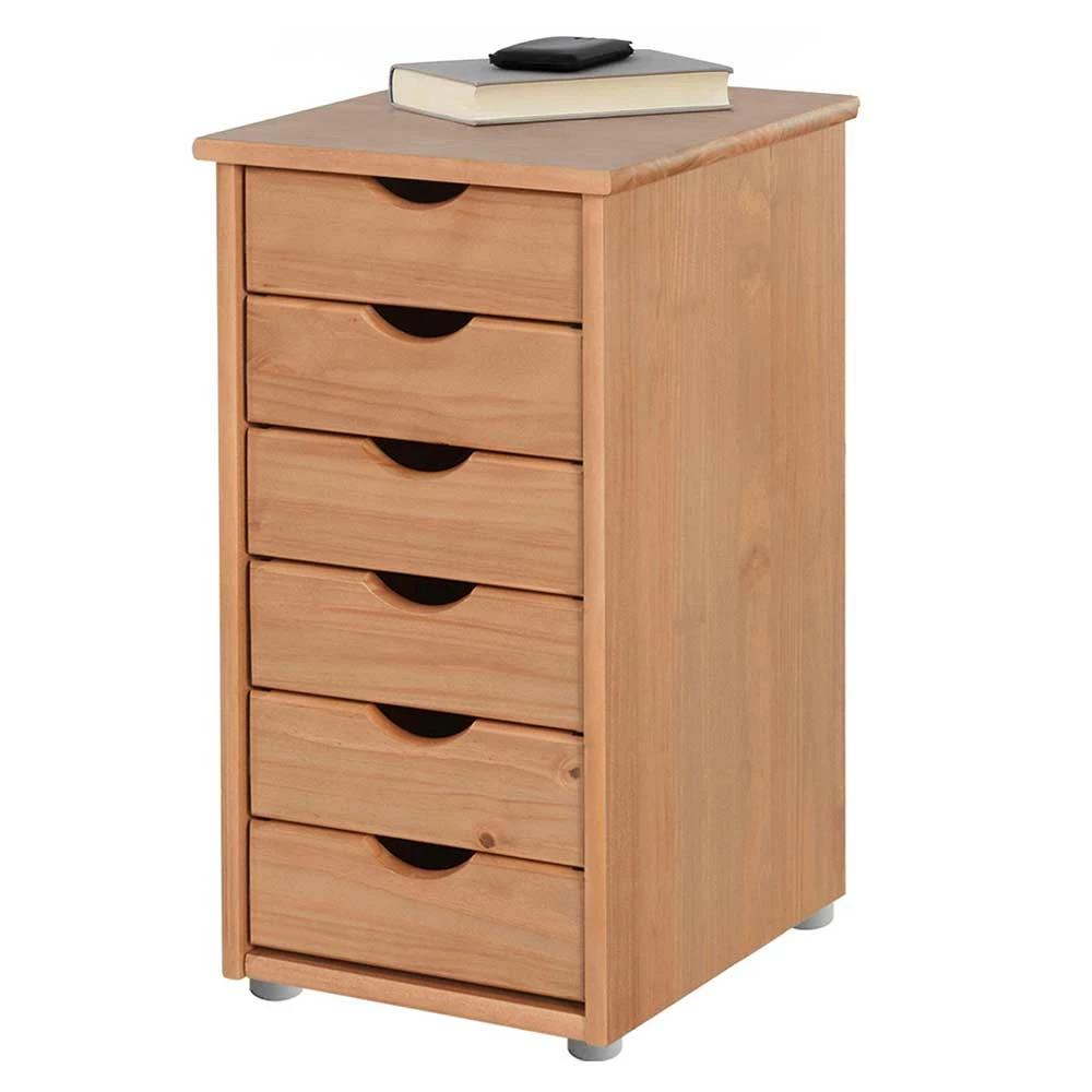 Schmale Kiefernholz Kommode Mit Sechs Schubladen – Calpano