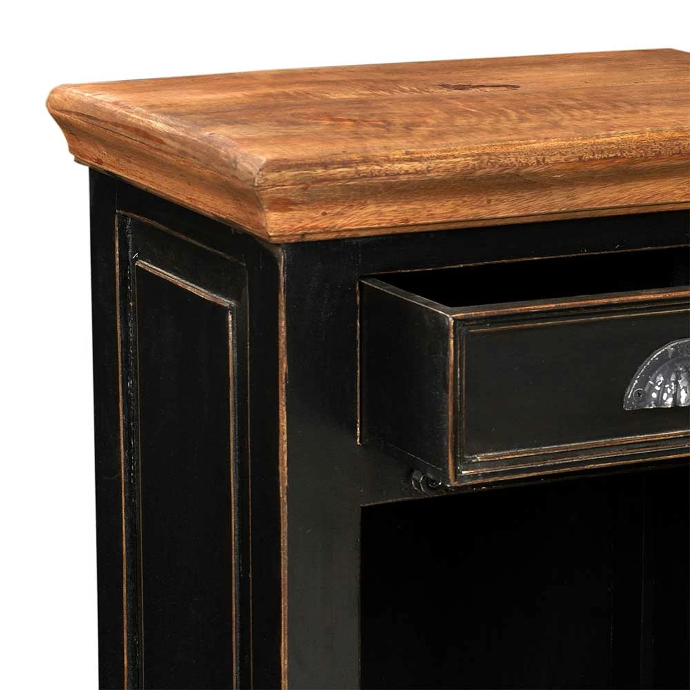 - Rustikale Kommode in Schwarz, Oberplatte in Honigfarben abgesetzt