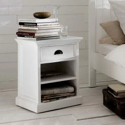 Landhausstil Nachtschrank Venzeno Aus Weißem Holz Teilmassiv